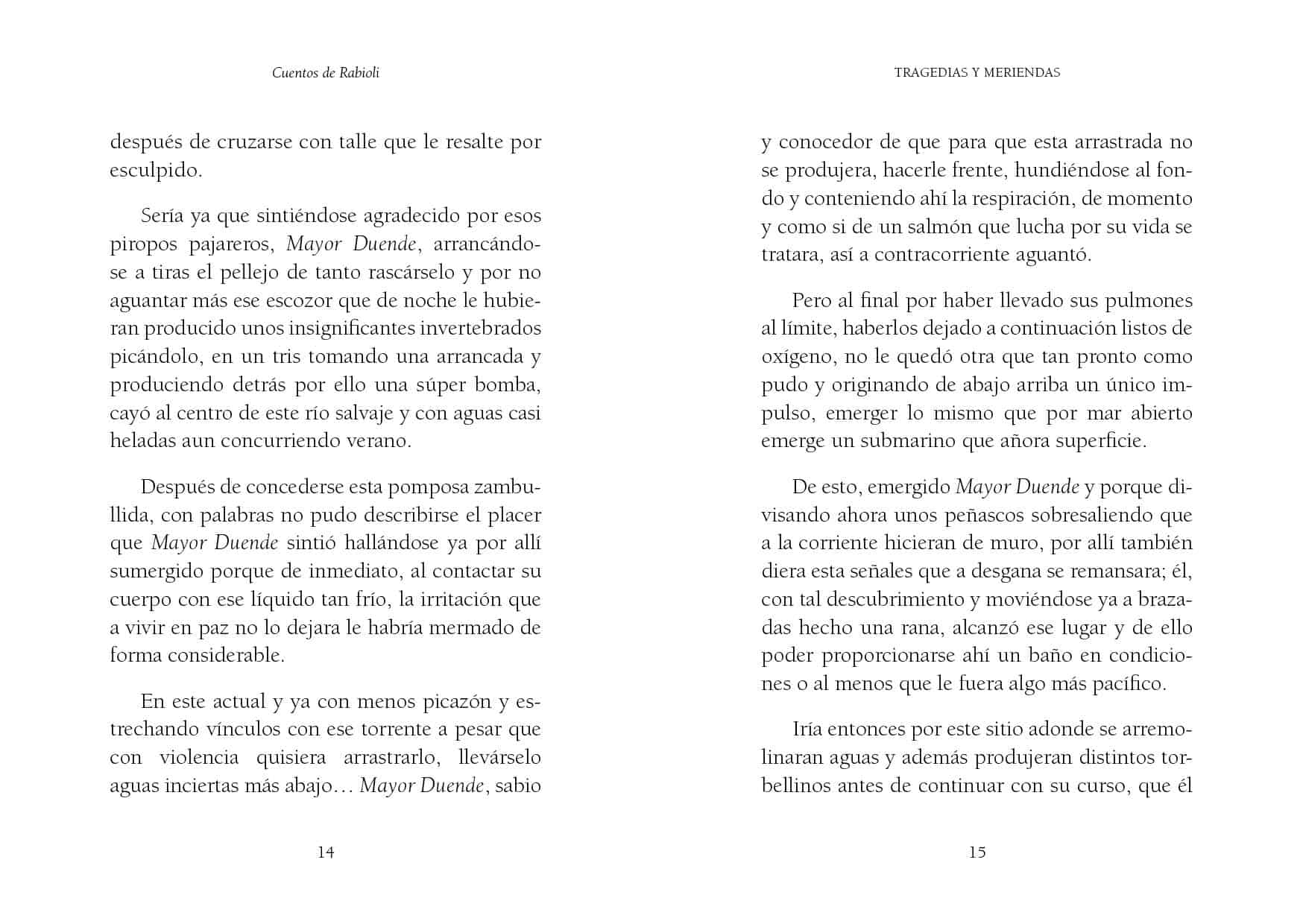 En este cuento hizo tanto calor siendo verano que, por ello, a Mayor Duende, habitando esferas libres de incompetentes y canallas, no le quedó otra que después de pasar una noche sin pegar ojo debido a que fuera atacado por una panda de invertebrados, lanzarse a la aventura de visitar un río de aguas salvajes teniéndolo cercano.